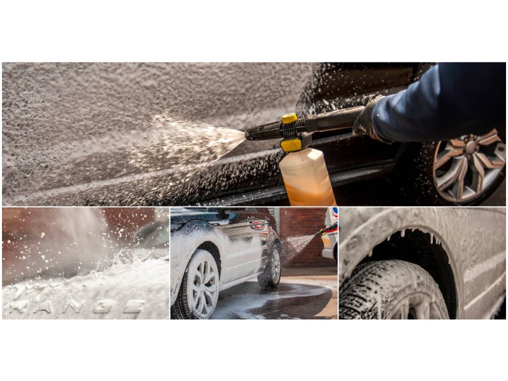 Snowfoam Pro je vybaven technologií pěny nové generace, kterou lze aplikovat pomocí jakéhokoli domácího nebo profesionálního tlakového čističe s pěnovým nástavcem nebo pěnovou pistolí. Malá velikost bublin Snowfoam Pro znamená větší kontakt s vozidlem a hustší přikrývku z měkké bílé pěny, která odstraňuje nečistoty a nánosy z povrchu vozidla.